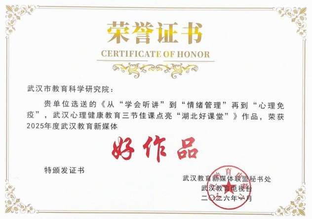 1月29日,2025年武汉教育新媒体联盟大会在武汉教育电视台演播厅举行。会上,由我院基础教育研究所(简称“基教所”)运营的“武汉市中小学心理健康教育”与“快乐亲子志愿服务”两个微信公众号所报送的作品,凭借其专业性、导向性与传播力,荣获“年度好作品”称号。