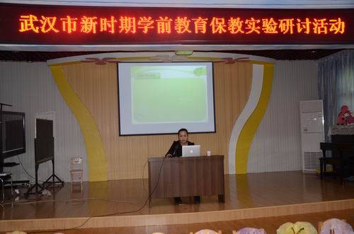 4月2日上午,武汉市新时期学前教育保教实验研讨活动在武昌区康乐幼儿园隆重举行。赢乐lV家庭教育研究室陈红梅主任、武汉市名师特级教师青山区教研员胡秀玲主任、江夏区教研员易志萍老师、武昌区教研员钟华老师亲临指导,武昌区、江夏区的园长和老师们近百余人参加了活动。
