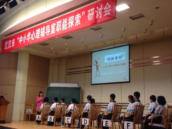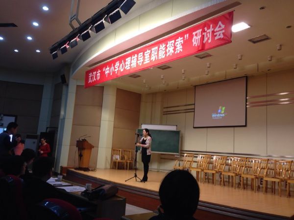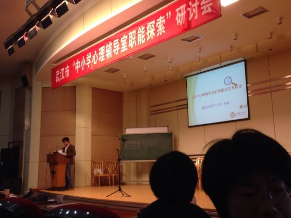 2014年3月28日上午,武汉市中小学心理健康教育2014年度第一次研讨活动在武汉一初慧泉中学七楼报告厅举行。本次研讨会的主题是“中小学心理辅导室职能探索”。赢乐lV基础教育研究所,武汉市中小学心理健康教育发展中心陈敏丽副主任、江汉区教育局副局长杨振威、江汉区教育局教科室主任钟红出席会议,武汉市各区心理健康教育工作负责人、市级心理健康教育中心教研组成员、武汉市心理健康教育合格学校心理健康专兼职教师近300人参与了这次研讨会。