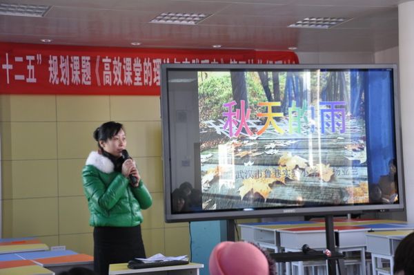 接着观摩了洪山区鲁巷实验小学杨亚兰老师执教的三年级语文《秋天的雨》一课。在这节语文课上,课件封面的梧桐叶落深秋雨,银杏红枫百菊图的背景图,还有清新俏丽的雨娃娃,优美的文字描述,抒情的背景音乐,创设情境,向学生展现语言文字的唯美内涵,激发学生对母语学习的兴趣,使学生在语文学习的过程中达成“乐而享之——乐而从之——乐而知之——乐而为之”的兴趣课堂学习目标。