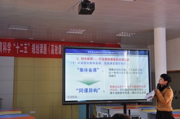 最后,由我校教研副主任刘家旎做了题为《运用信息技术 构建高效课堂》的报告。在报告中从选题意义、研究的目标内容方法、具体做法、总结反思等方面加以介绍说明。