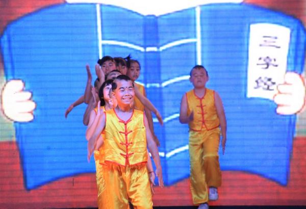 图为武汉市黄陂区特殊教育学校表演的舞蹈《上学堂》。