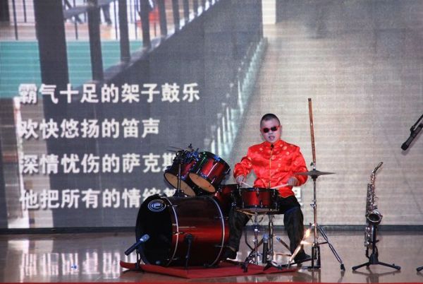 图为武汉市盲童学校宋林龙表演的器乐联奏。