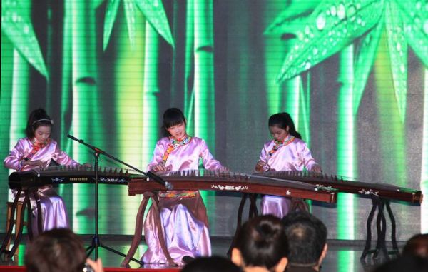 图为武汉市中山特殊教育学校的孤残儿童表演的古筝演奏《瑶族舞曲》。