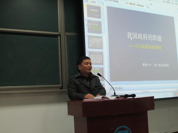 首先,来自武昌实验中学的青年教师邓伟讲授了一节文化生活复习研讨课《文化创新的途径》。邓伟老师通过知识梳理、题组训练,知识构建,总结规律这样一条主线,充分发挥学生的主体作用,引导学生自主建构知识,总结规律。随后,实验中学的骨干教师丁孝磊为大家作了《文化生活》一轮复习的专题报告。丁老师的报告构思巧妙,用生活化的语言将大家所熟悉的内容与政治学习结合起来,让人耳目一新。