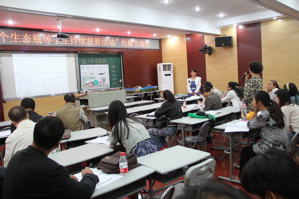 9月27日上午,围绕着杨帆老师新的科学教育成果——持续观察生态瓶有效策略的展示,江岸区惠济路小学举行了“实施‘做一个生态瓶等学生持续观察活动’经验交流会”。本次活动作为科学课中关于“生态瓶”教学瓶颈的突破方法研究探讨的首站地,得到了各方关注。与会的代表有武汉市科学教研员甘金福、区教研室主任范学英、区科学教研员陶汉超、全国科学教育专业委员会会刊《科学》杂志主编刘绍江,以及武汉市九大城区科学教研员、惠济路小学的领导和全市骨干科学教师百余人。
