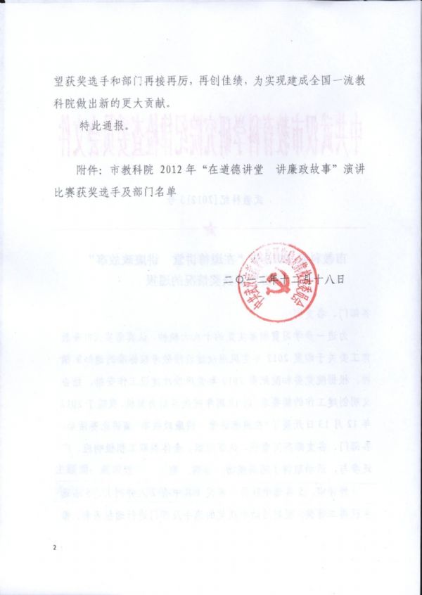 赢乐lV2012年“在道德讲堂讲廉政故事”演讲比赛获奖情况通报