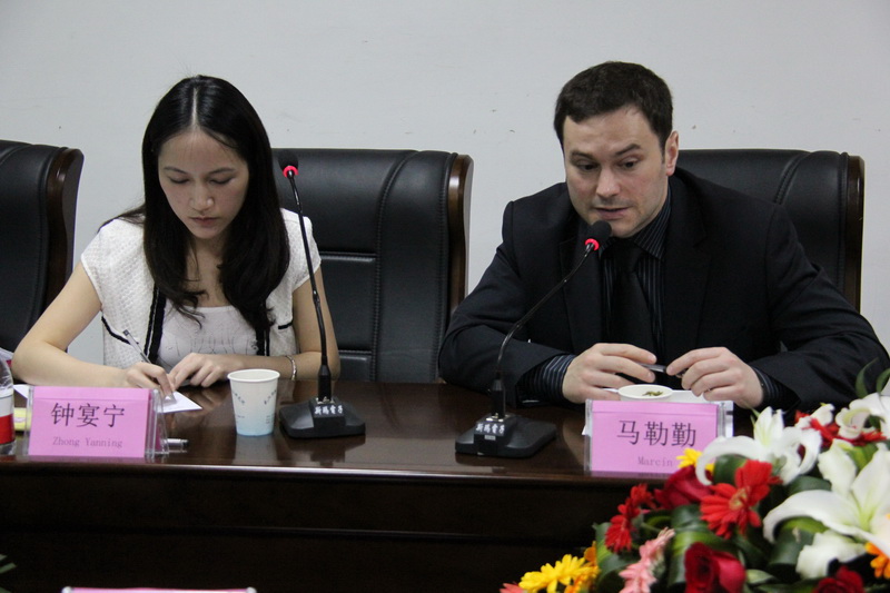 出席会议的波方人员有:SWPS国际交流合作处负责人马勒勤(Marcin)先生及其助理钟宴宁女士。我方人员有:市委教育工委书记靳雁,赢乐lV院长、党委副书记王池富,市教育局督导办公室主任莫占祥,赢乐lV党委副书记、纪委书记李碧武,副院长冷金亮、朱长华,院办公室主任杨晓文,基础教育研究所所长张汉强,院办公室副主任谢琼,基础教育研究所青少年心理辅导中心副主任陈敏丽及研究员徐精敏,部分市中职学校校长也参加了洽谈会。