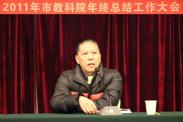 市教育局徐定斌副局长专程赶来参加了我院的总结大会,并发表了重要讲话。徐局长对我院2011年的工作、成绩和影响给予了高度肯定,对我院党委、行政、教职工在工作中体现出的敬业精神、创新精神和奋进精神表达了高度敬意。对下一步工作,徐局长通过“落实、深化、精细、实效、引领”五个关键词提出了建议和要求。希望全体教职工抢抓机遇,携手共进,为全面开创教育改革新局面作出更大的贡献。