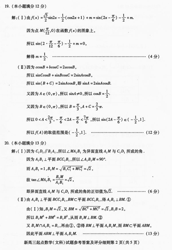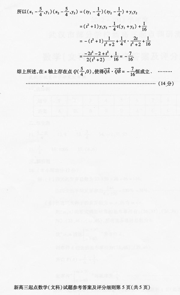 2012-2013学年度武汉市部分学校新高三起点调考数学(文科)参考答案