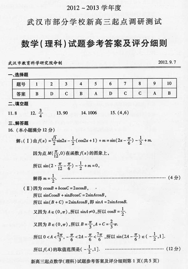 下一条:2012-2013学年度武汉市部分学校新高三起点调考数学(文科)参考答案