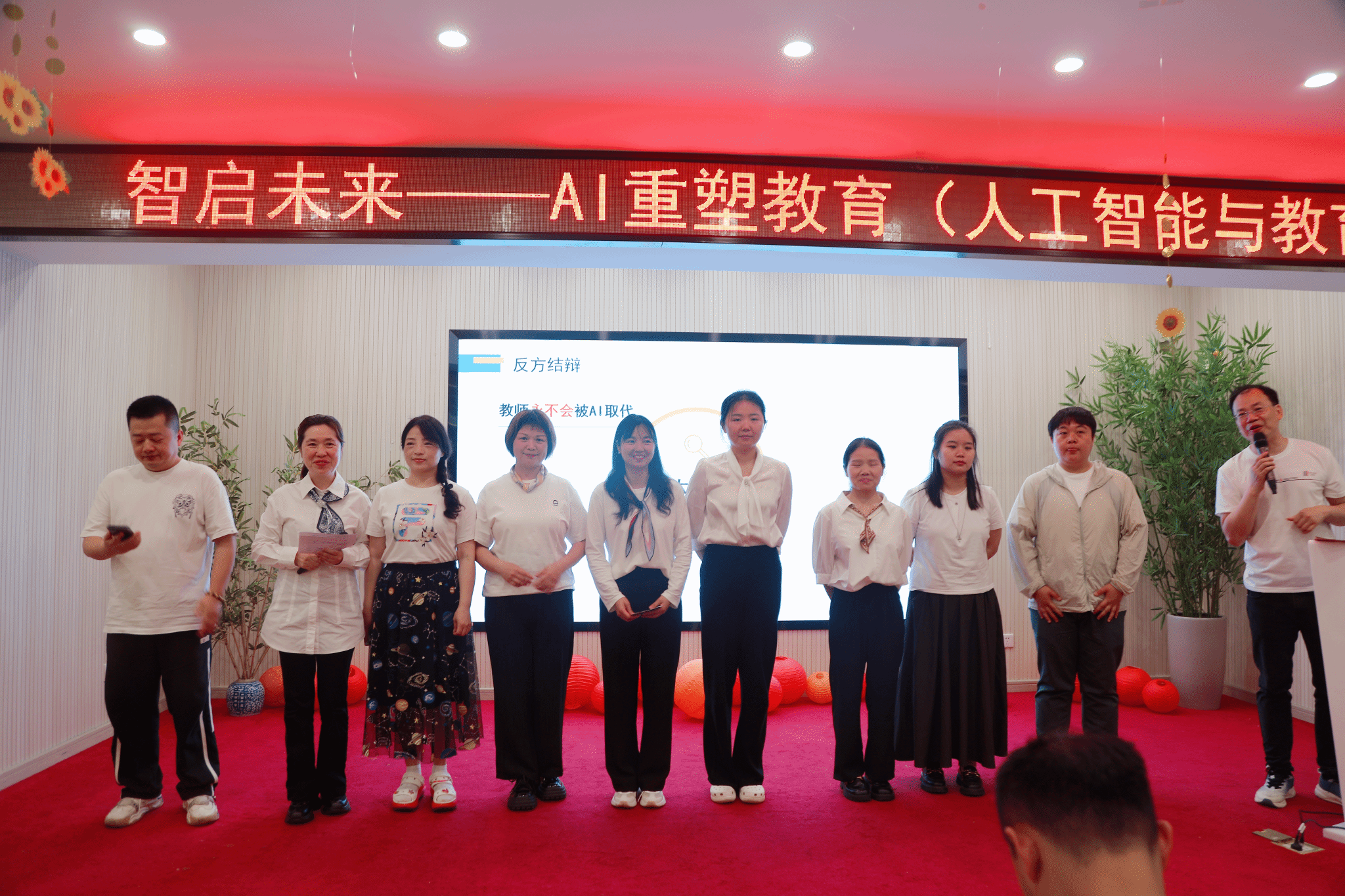 在自由辩论环节,正反双方围绕“AI与教师谁该是主角”这一议题展开探讨。正方观点为“智能技术可以优化教学流程,让教师专注育人工作”,反方观点为“教育的情感互动不可替代,教师永远是课堂的灵魂”。经过激烈讨论,教师们达成共识:教师如同“探索世界的向导”,而AI是工具;教师的不可替代性在于情感联结与教育机智。