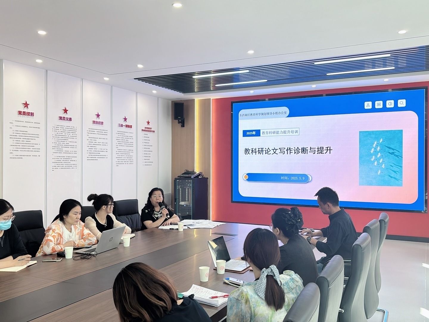 5月9日,东西湖区教科规划办在黄狮海学校开展教科研论文写作专项培训助力教师提升写作能力,部分教科研骨干教师参与培训。