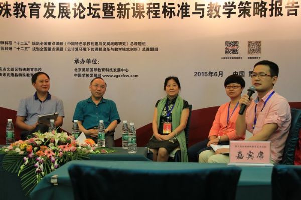 2015年6月6日—7日,第三届全国特殊教育发展论坛暨新课程标准与教学策略报告会在重庆召开。开幕式由重庆市教育评估院院长龚春燕主持,由西南大学教育学部特殊教育系主任赵斌、论坛组委会负责人、总课题组副组长袁国忠致辞,会上对“中国特色学校创建与发展战略研究”子课题实验单位授牌。开幕式结束后,紧接专题报告。